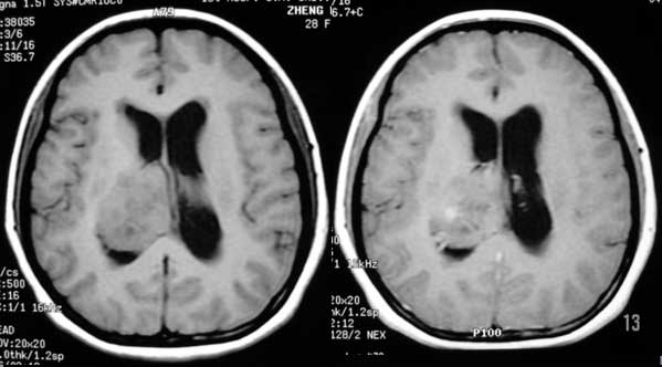 右侧丘脑胶质瘤?右侧脑室内的异常信号如何解释?不会是丘脑出血破入脑室?