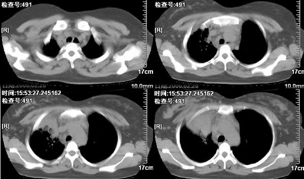 有没有做增强?可以把增强的片子上传吗?肺窗呢?(纵隔内好象有一淋巴结影)