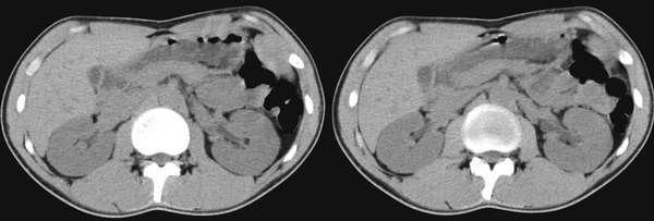 男,23岁,腰痛一个月,彩超示双侧肾盂分离