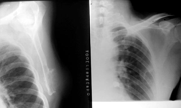 以下是引用lkc8963在2006-3-20 0:01:00的发言:[br]骨软骨瘤基本可定,至于有没有恶性变,本例依据不足,似见软块但皮下脂肪尚清,不知临床表现倒底有没有肿块还是突起?建议ct或穿刺检查。