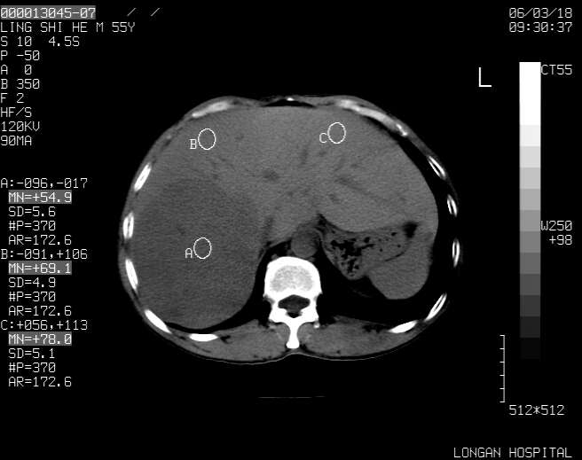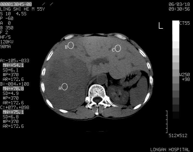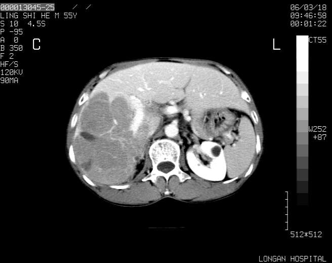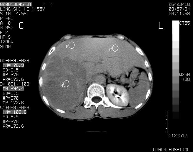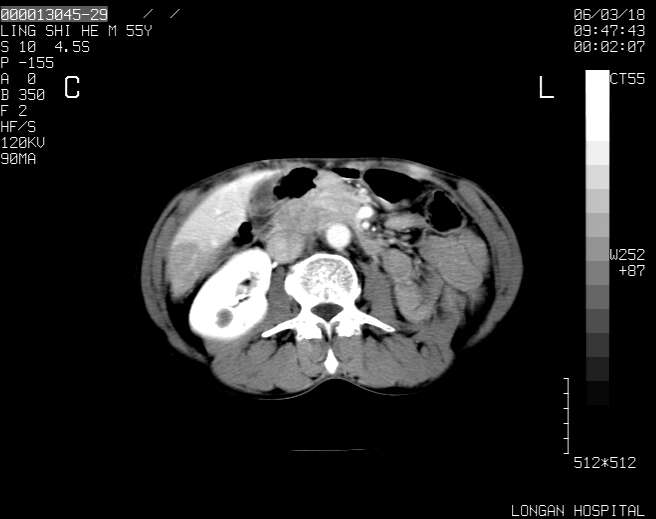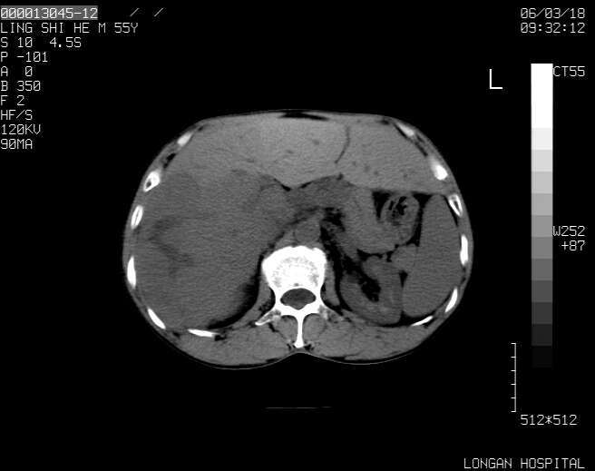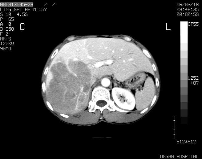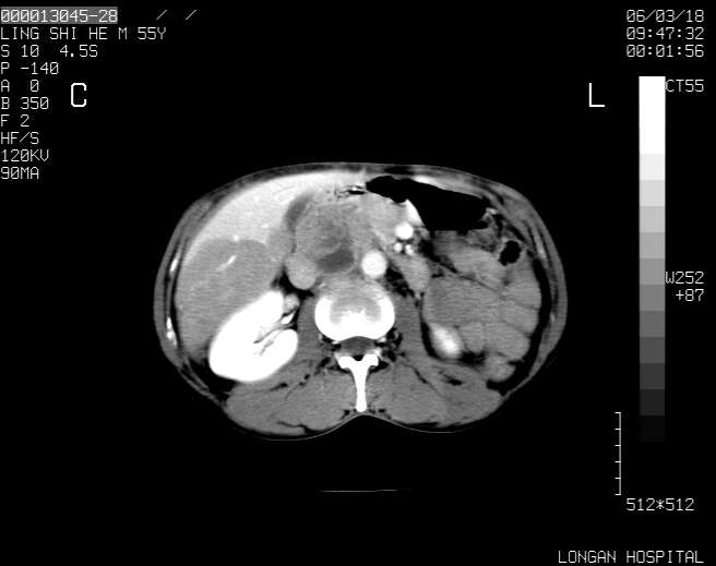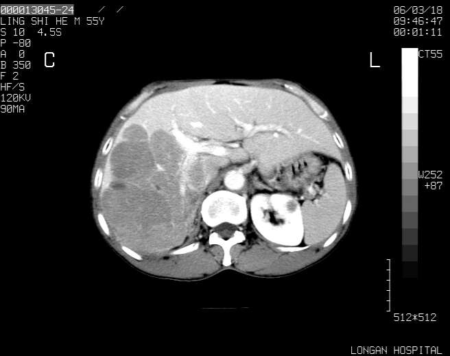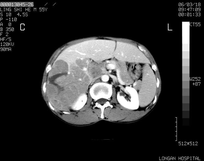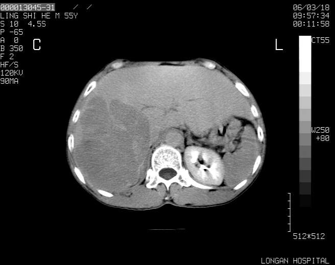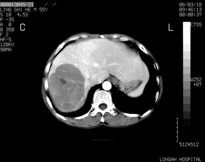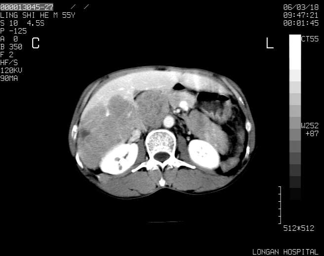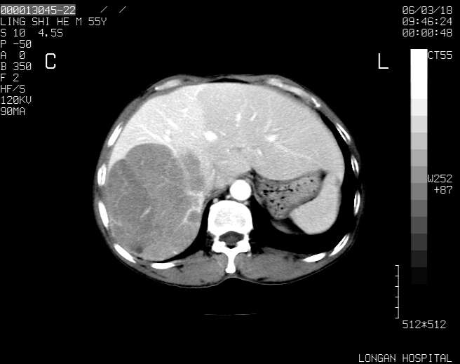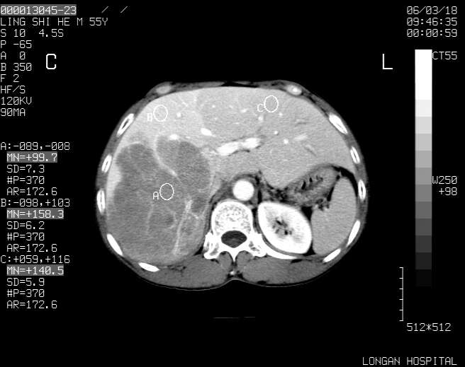 以下是引用guzhongliangddd在2006-3-21 22:13:00的发言:[br]病灶主要位于肝右叶的后份,内见异常血管,门脉主干及右支受侵{提示有癌栓形成},门腔间隙内见增大淋巴结。肝左叶内未见异常。