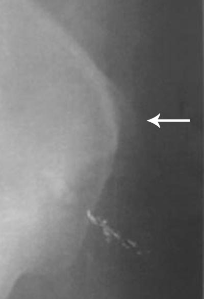 透视下点片(切线位)。这样对病变显示清楚。