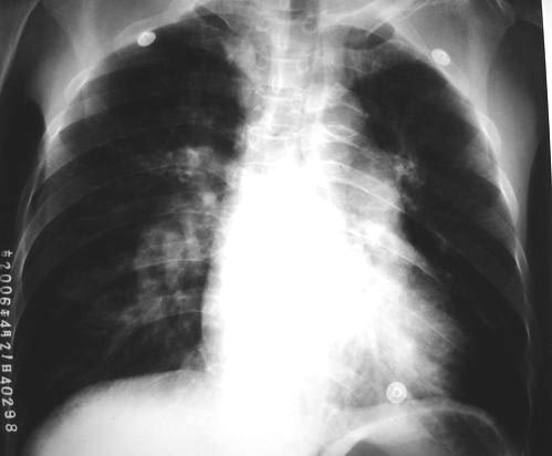 以下是引用lkc8963在2006-4-23 13:48:00的发言:[br]照片太黑无法观察肺野;仅见右下肺动脉干增粗,左肺门扩大;左下肺心后方似见片影(可以加照侧位或多轴位透视可以明确),右室轻大,上纵隔结构正常,说明有肺动脉高压,可能为肺心病所致,是否存在右心衰请结合临床,本片提示征象不足;[br]至于有无肺栓塞,本片无明确支持该病诊断,但不能除外因有肺动脉高压征象。pe多有基础病史,在影像学表现常为肺外周楔片影,右侧多见,和肺动脉增粗,如需排除,可做一个胸部ct增强了解管腔内有无充缺。