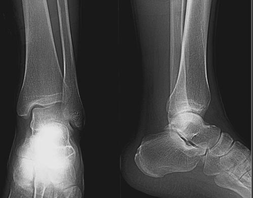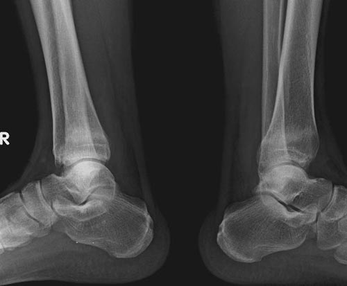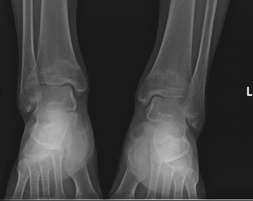 双侧胫骨下端疲劳骨折。