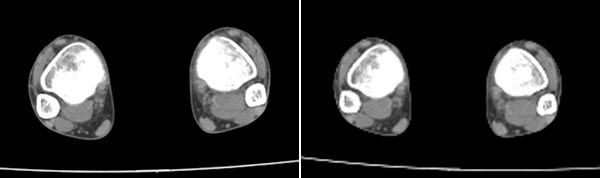 CT3439:两胫骨下段条带状高密度影