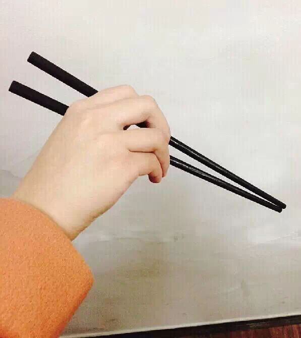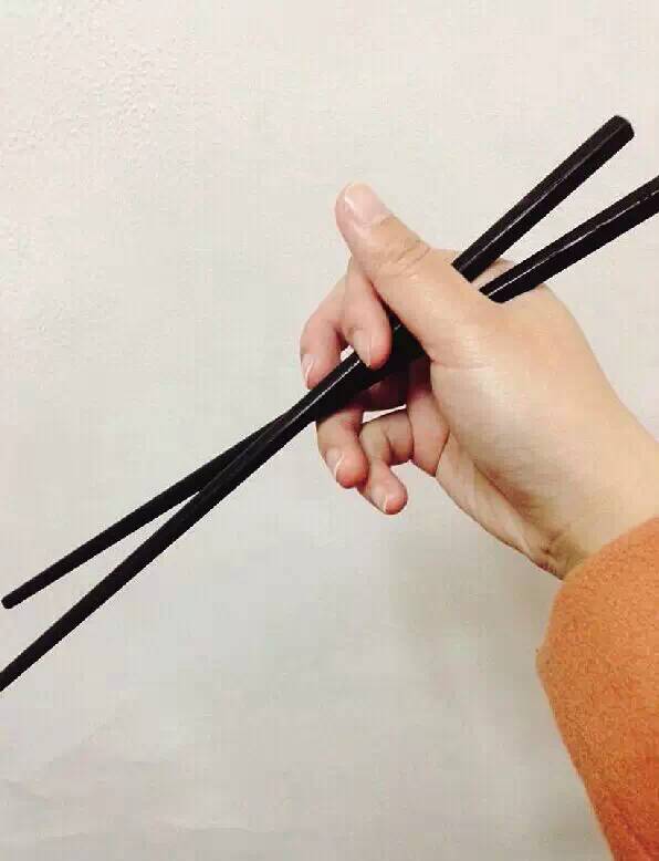 5、握笔式,即以大拇指和食指顶着上方筷子,如同握钢笔,使用时,筷子会交叉。