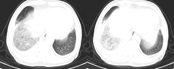 以下是引用guzhongliangddd在2006-5-14 22:33:00的发言:[br]右肺下叶肺野密度增加,呈毛玻璃样密度改变,右恻叶间胸膜有增厚,双恻胸腔有积液.肺内改变我首先考虑是肺泡性肺水肿.
