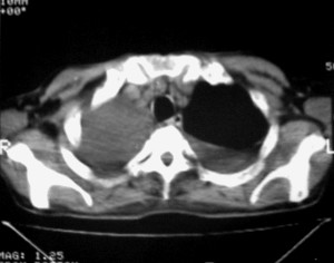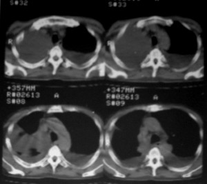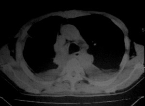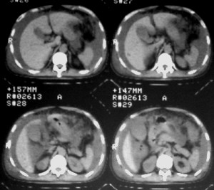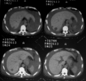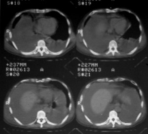 以下是引用yz在2006-5-16 0:17:00的发言:[br]1、右肺癌术后改变。2、双侧胸水、腹水。3、多发性肝囊肿,右侧肾囊肿。