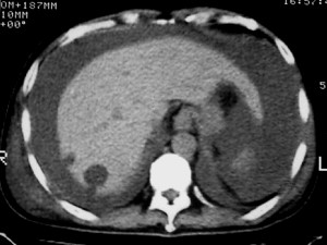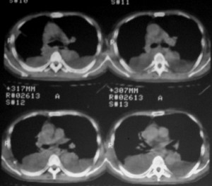以下是引用wawaquan在2006-5-15 21:22:00的发言:[br]m ,60岁,右上肺ca术后一月。[br]纵隔淋巴结增大,双侧胸水。考虑术后残留,而非复发。[br]腹水,肝及右肾多发低密度影。考虑转移。