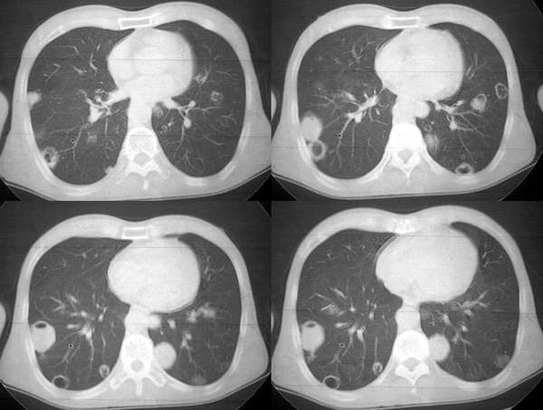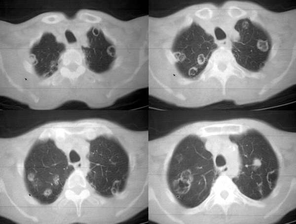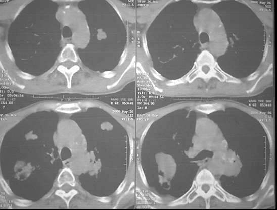 肺癌肺转移,其中有空洞转移,这与放疗或化疗有关,