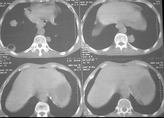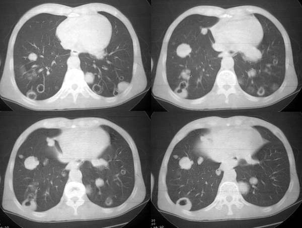 头一会见..谢谢指教..多发性转移伴空洞是不是与放疗有关...?