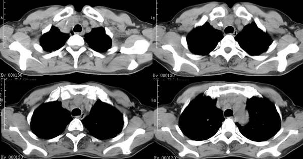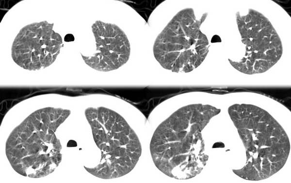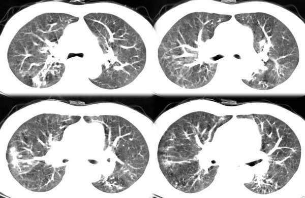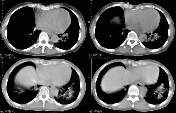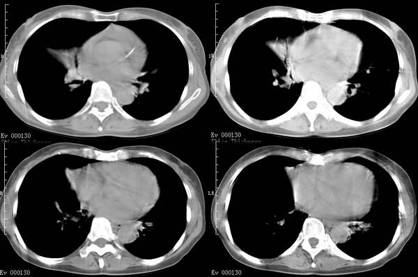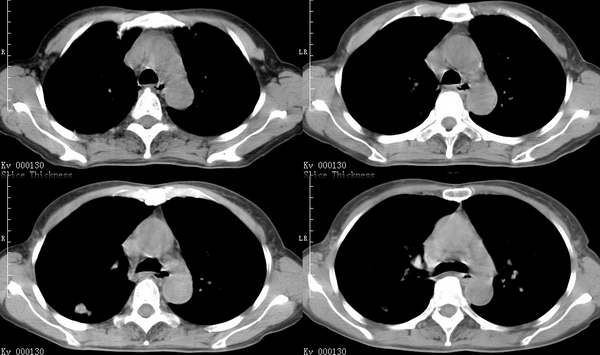以下是引用中山医在2006-6-3 21:45:00的发言:[br]右上叶背段及左下叶见斑片状密度不均模糊影,右中叶支气管狭窄,中叶密度增高,体积缩小.纵隔未见明确淋巴结.结论:1、两俩结核,右中叶支气管内膜结核,并中叶肺不张。2、两肺炎;右中心型肺癌,并阻塞性肺不张。