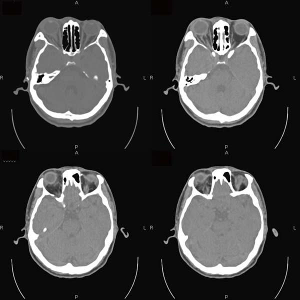 以下是引用逸风在2006-6-5 17:45:00的发言:[br]ct显示:右侧眼球轻度突出,眼环增厚,球后脂肪间隙模糊,可见点状高密度灶,同侧视神经稍增粗,周围眶壁骨质未见明显异常,眼环完整,球内未见明显异常密度.[br]诊断意见:1.右侧眼球钝挫伤合并球后间隙出血可能;2.右侧视神经挫伤待排.[br]建议必要时hrct扫描,排外其它.