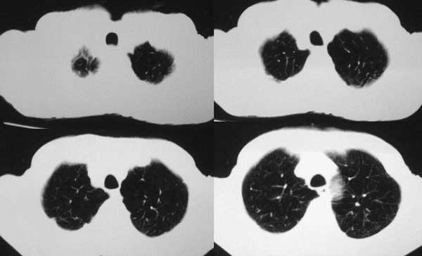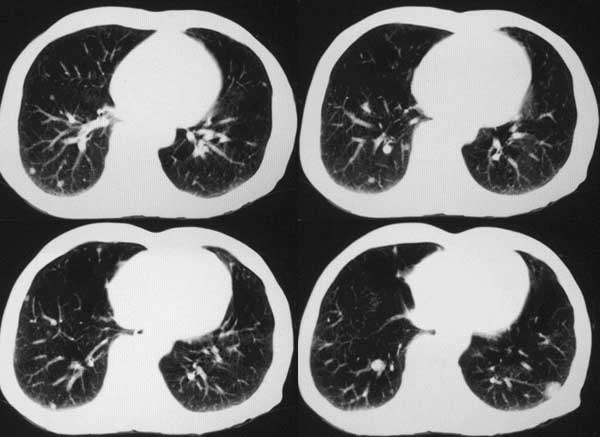 患者,男79岁,左侧肾癌术后5个月。近三个月,咳嗽时有痰中带血。