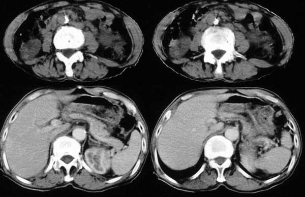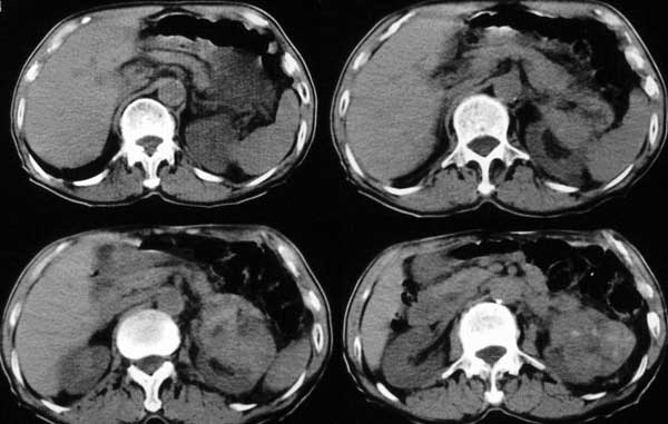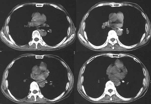 支持肾癌,伴转移.气管内占位,做俯卧位扫描即可明确.