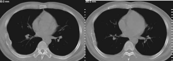 1右肋骨骨纤维结构不良。2骨转移瘤。