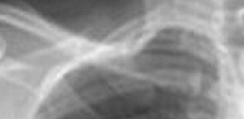 请问楼主为什么不照侧位或仰卧位,既然透视看看也好吗!既然没有就猜吧!!先考虑:液气囊肿,期待结果.另请楼主把右第二后肋放大上传,本人处理太模糊,我看有问题,