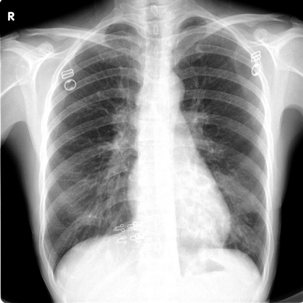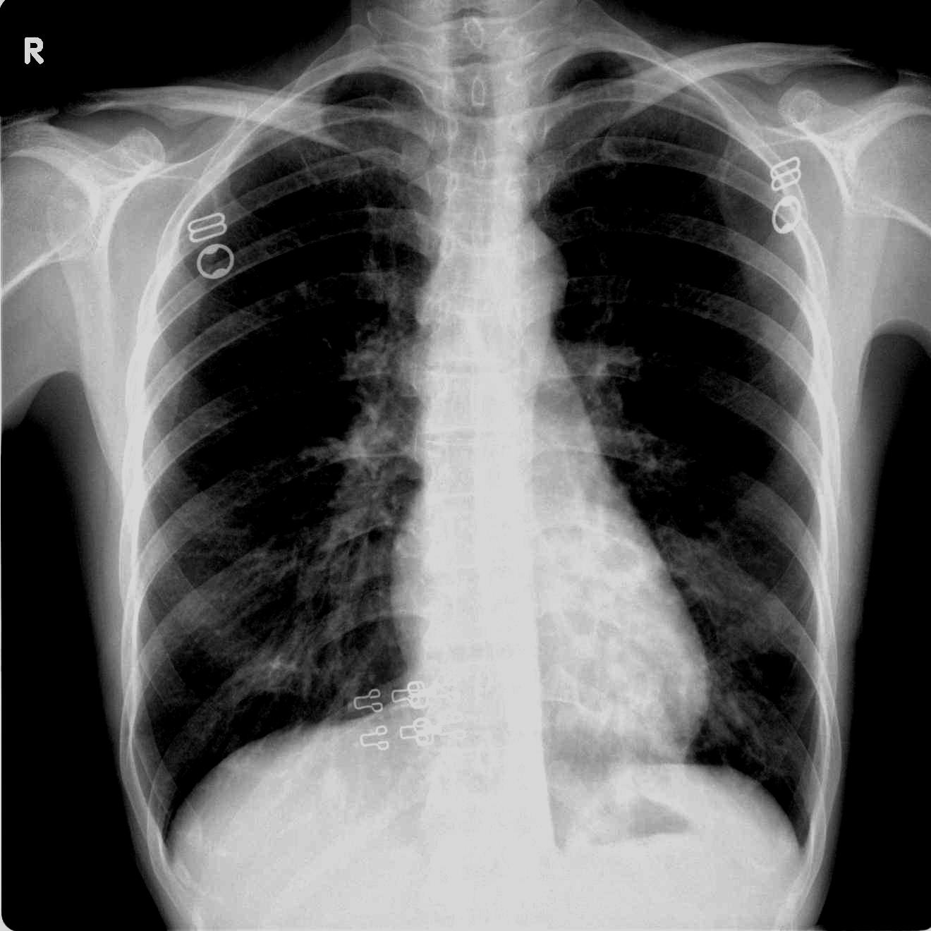 胸部检查请传胸部正侧位减少盲区及有利于胸部病变的定性。
