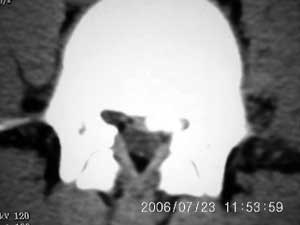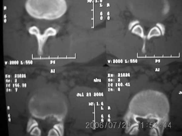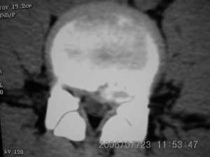 以下是引用守望可可西里在2006-7-23 15:09:00的发言:[br][br] 支持xiaoniu老师“椎体后缘软骨结节”的诊断,并附以下资料供大家对椎体后缘突入椎管内高密度加以鉴别。两者结合,应该有帮助。[br] 腰椎间盘突出并椎体后缘离断症[br] 腰椎后缘离断骨片伴随突出的椎间盘向后移位压迫硬膜囊及神经根,临床上往往以其引发的腰腿痛和椎管狭窄的间歇性跛行症状拟诊椎间盘突出症。虽然本病的发病机理尚未完全明了,命名也尚待统一,但ct对其诊断价值和指导治疗的作用已获得充分肯定”,应作为本症的首选检查。[br] 腰椎间盘突出并椎体后缘离断症的临床症状和体征与椎间盘突出症和椎管狭窄症的表现相似。常规x线腰椎正位片改变较少,侧位片可显示椎体后部局限性骨质缺损及其后方的游离骨块,x线片检出率分别是近50%及70%。[br] 关于鉴别诊断本症椎体后缘突人椎管的骨片,其鉴别需与(1)突出之椎间盘钙化,其钙化团块多在突出物内,边缘钝园,上下径多在5mm以内。(2)后纵韧带钙化均位于突出物后且居中较窄,上下可跨越间盘组织。(3)椎体后缘骨唇劈裂,伴有椎体周缘多处增生骨块。以上椎体后缘均无骨质缺损表现为其鉴别要点。(4)椎体后缘撕脱骨折,有明确外伤史,骨片多为三角形,骨缺损边缘锐利,有新鲜骨折症。椎体后缘骨质缺损应注意与骨破坏性病变如结核、感染性脊柱炎、椎体软骨瘤、转移瘤等疾病鉴别。 [br]