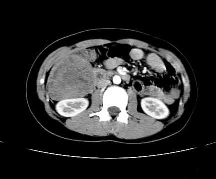 以下是引用卜一在2006-7-26 6:30:00的发言:[br]右下腹巨大肿快,密度不均匀,内见坏死低密度区,边界清楚,与周边胀器明显有分界,未见强化,多考虑来源于间叶组织的良性肿物.