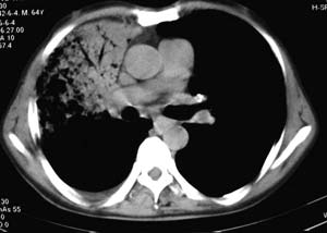 综上,以右上肺tb(干酪性肺炎)首先考虑.当然大叶性肺炎不能除外.(血象不是特别高,纵隔内淋巴结肿大,也不甚支持.).如果经积极抗感染治疗,病灶明显好转.更能明确为大叶性肺炎.也不能明确排除肺ca.建议痰培养和纤支镜.