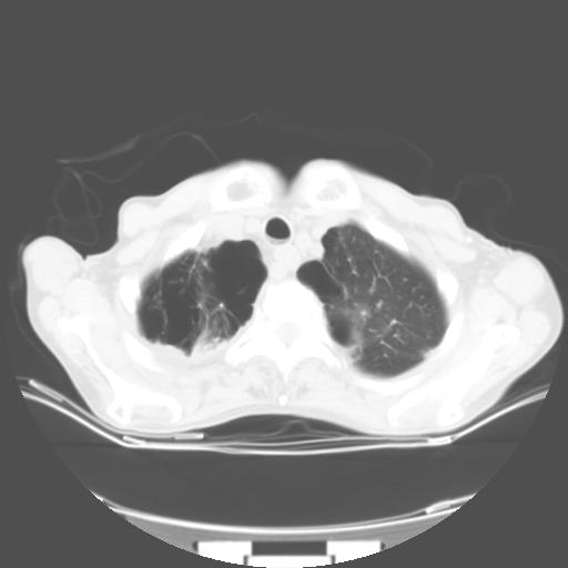 周围型肺癌伴脑转移,两上肺肺大泡