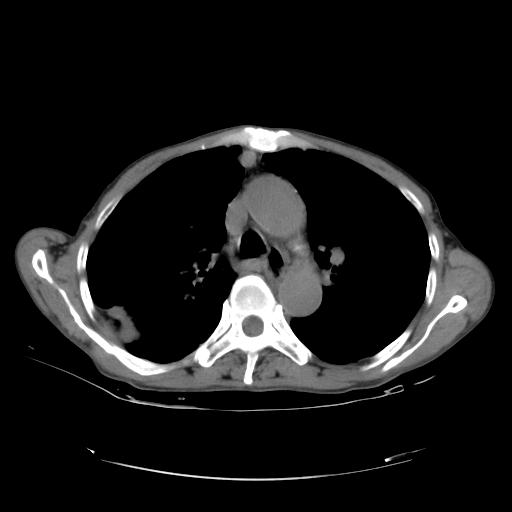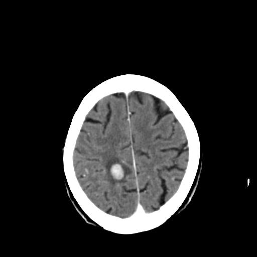 本例颅内见多发大小不等高密度灶,有强化及水肿;另外,胸锁关节层面可能是第四胸椎及右侧肋骨起始部骨质欠连续,椎旁软组织肿胀,建议调骨窗观察。