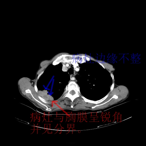 8楼版主所提的问题横好:此病例的讨论焦点应该是\"病灶的位置\".我认为其实质是“局限性胸膜间皮瘤与肺内肿块的鉴别诊断!”