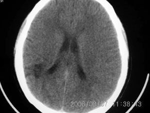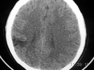 左颞顶叶不规则低迷度影边界尚清楚,岁数年轻,应考虑脑血管畸形。建议强化或核磁,进一步检查。
