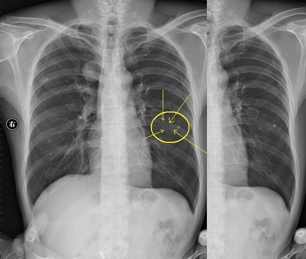 以下是引用sdqzwyx在2006-8-13 8:29:00的发言:[br][br]右上纵隔旁示类圆形密度增高影,边缘光整。[br]可以考虑:[br]1 首先排除体外异物:胸坠、衣服上的印花、口袋内圆形物件等。[br]2 肺内:若为肺内病变,肯定是良性的,肺结核球、囊肿、错构瘤等。[br]3 来源于纵隔、胸膜、或附近骨骼,病变与纵隔呈锐角,周围骨骼联系不太密切(见过一例来源于骨骼的骨软骨瘤重叠肺内),所以可能性不是太大。[br][br][本贴已被 sdqzwyx 于 2006-8-13 12:35:54 修改过]