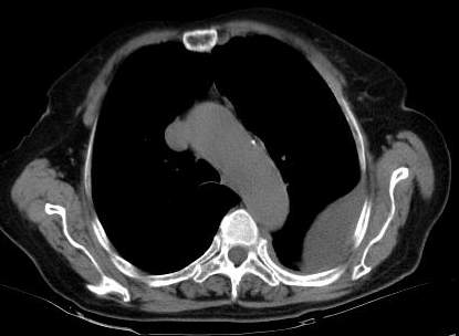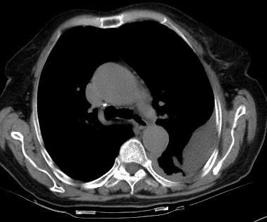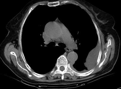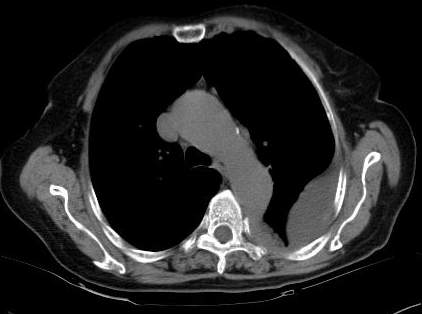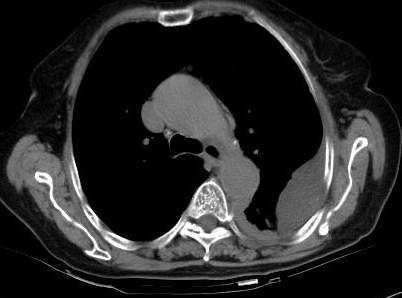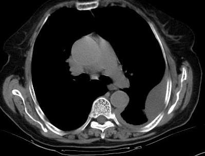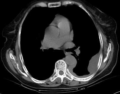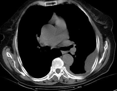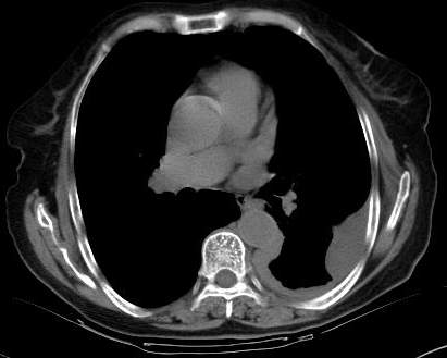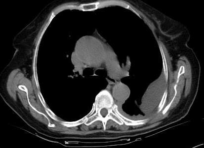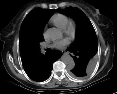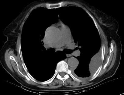 [br]请上传纵隔窗。目前还是支技包裹性积液(明显梭形),即使是间皮瘤并积液也少梭形的。