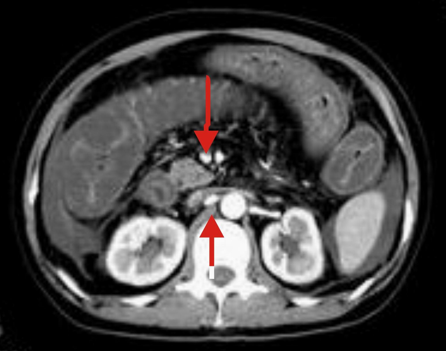 血管炎,结缔组织疾病等会有临床其他症状发生,一般不会有本例的临床表现。再者,所给图片加上楼主已经仔细观察过,肝段下腔静脉肠系膜静脉均正常。腹主动脉也无明显异常,暂不考虑血管炎及结缔组织疾病。