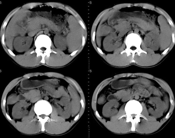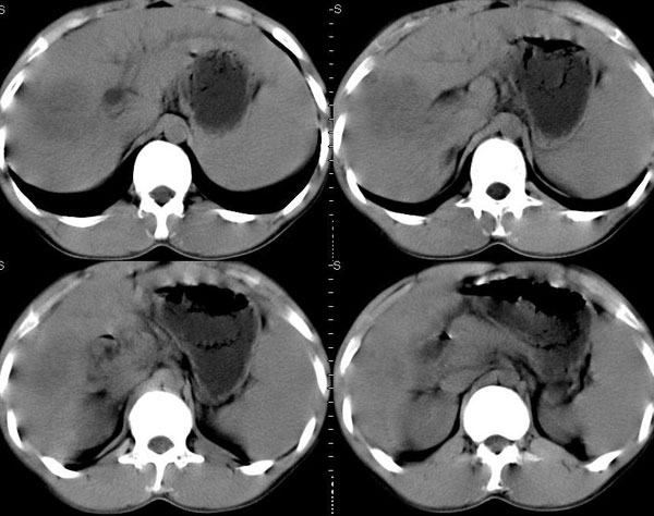 以下是引用晓杰在2006-8-26 21:18:00的发言:[br]肝右叶前段片状低密度灶,边缘模糊。肝内胆管扩张。考虑肝ca? 肝脓肿?[br][br][br]胰头增大,结构模糊,考虑:占位病变。建议增强