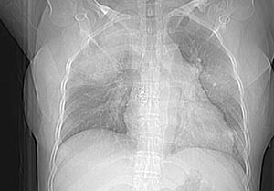 没见过这样的病例。我先考虑淋巴瘤其次是肺泡癌。
