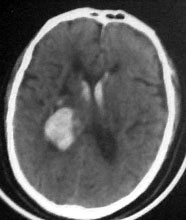 病人男性52岁,一年前曾患脑出血.今突发剧烈头痛,恶心,呕吐..病人家属说病人自去年脑出血以后,精神异常!请大家看看左侧颞叶病灶考虑什么?片子不是很清楚请大家见谅!!左颞叶病灶ct值最高处为85hu