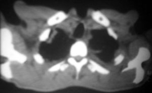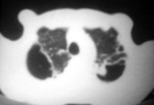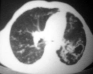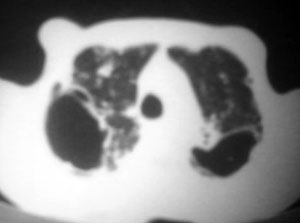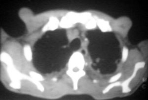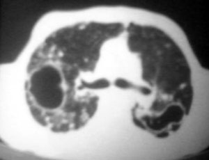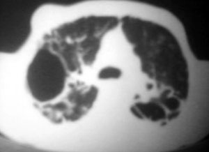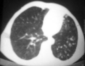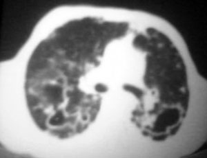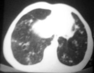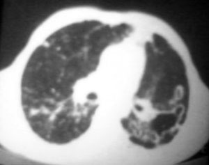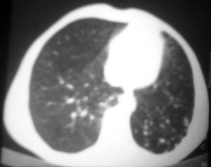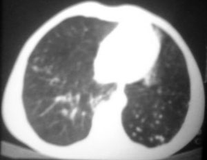 以下是引用逸风在2006-9-12 14:57:00的发言:[br]ct显示双肺上叶点片状及纤维索条状密度不均影,肺野外带近胸膜可见大小不等的含气空腔,壁略厚,境界清晰,未见液平面,中下肺野散在小片状及点状高密度影;纵隔内显示点状钙化,未见明显淋巴结肿大,构成胸廓诸骨未见明显异常.[br]诊断意见:1.双肺结核合并支气管播散;2.双肺上肺大泡.