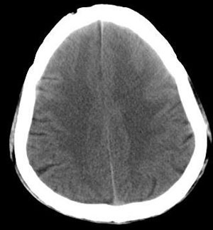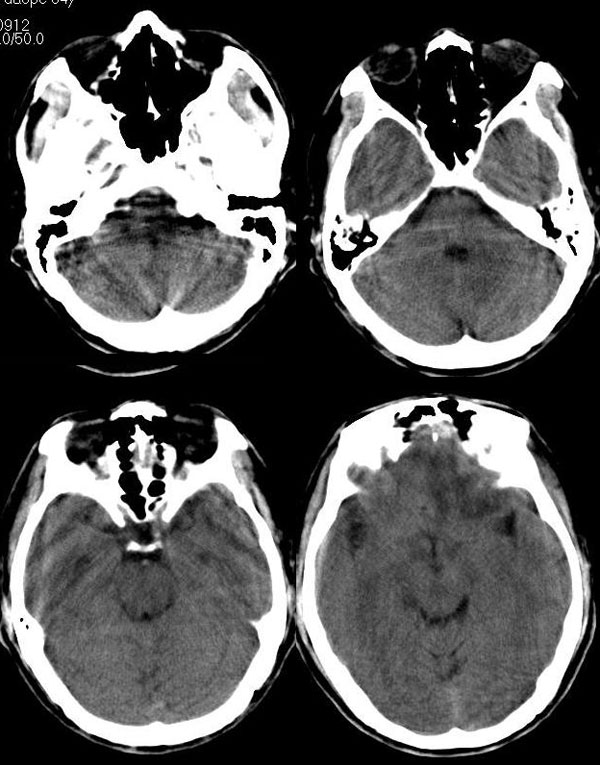 以下是引用w_jianhua在2006-9-12 12:43:00的发言:[br]左侧额叶白质区不规则略高密度影,周围见广泛水肿,左侧脑室受压变形,右侧额叶亦可见一小低密度影,多考虑转移瘤,建议肺部检查