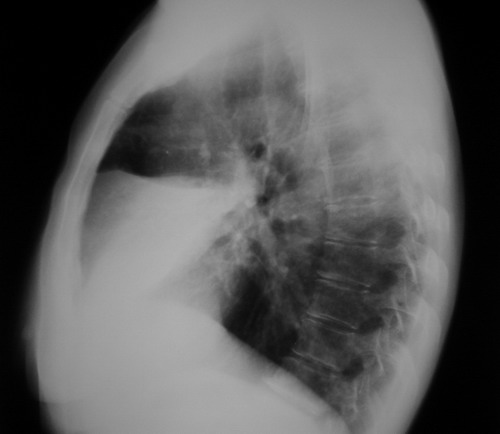较支持肺炎说法,不过请同志们观察下。那个是不是液平呢