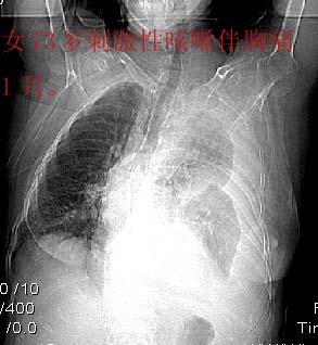 以下是引用dyqct在2006-10-15 15:11:00的发言:[br]考虑:左侧大量胸腔积液伴下叶压迫性且不张。