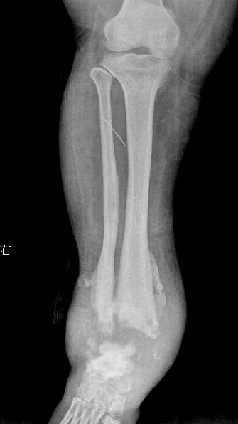 手术病理双踝夏科氏关节病、右下肢骨髓炎瘘道形成感染截肢