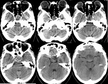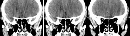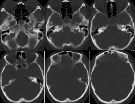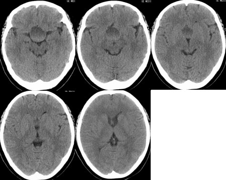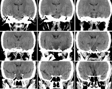 以下是引用xclzq_910在2006-11-8 22:31:00的发言:[br]鞍区垂体窝内见一巨大类椭圆性软组织块影,前后床突受压移位、变薄,鞍底凹陷,应当能明确诊断垂体瘤。不过最好能做个mri看看视神经受累情况