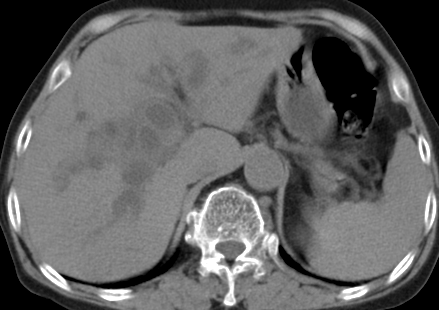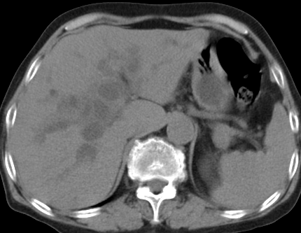 以下是引用dyqct在2006-11-9 9:14:00的发言:[br]肝大,表面呈波浪状,肝内外胆管扩张,胆总管下端腔内见小结节状等密度影,胰管轻度扩张。胆囊显示不清。[br]考虑:1、胆总管下端占位性病变(等密度结石?壶腹部肿瘤?);[br] 2、肝硬化?[br] 3、建议增强扫描进一步检查。