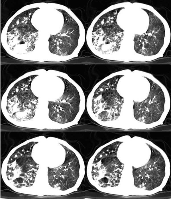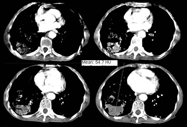 谢谢辜兄为我们网站的兴旺所做出的杰出贡献!右下肺脓肿并双肺感染、支扩,右胸膜粘连。
