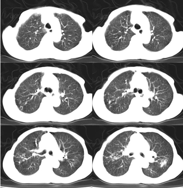 该患者是我上个月作的,经正规抗炎治疗半月后平片显示吸收。{患者不愿ct复查}