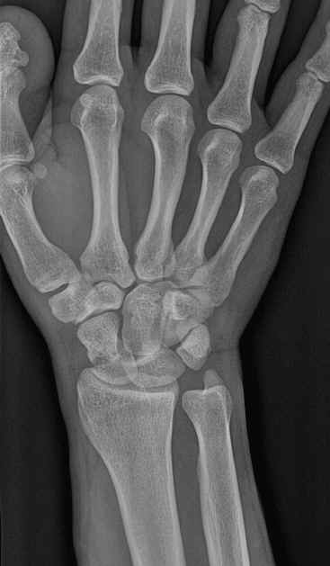 男,36岁,外伤后左腕部肿痛2小时。
