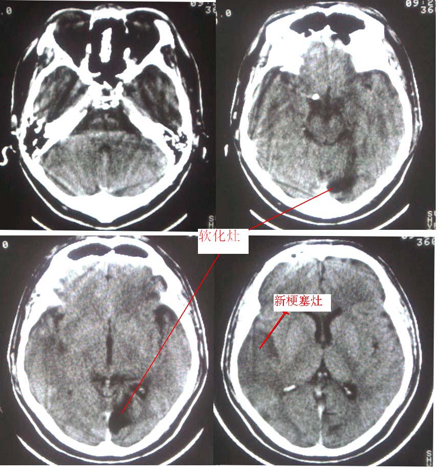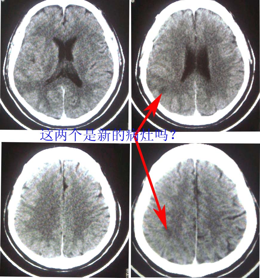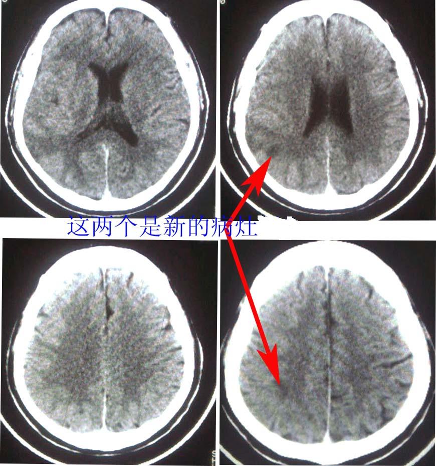 zhichi 是新发病灶,另外左枕叶可见软化灶形成.