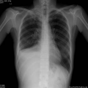以下是引用dyqct在2006-11-25 21:53:00的发言:[br]右“膈”明显升高,外侧升高。右上肺野见多数条状高密度影,边界尚清楚。[br]考虑:1、右肺底积液;[br] 2、右上肺陈旧性肺结核;[br] 3、建议加照卧位或右侧卧位。