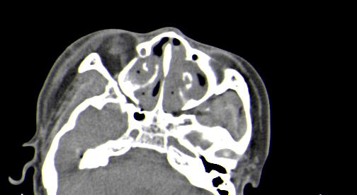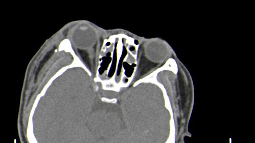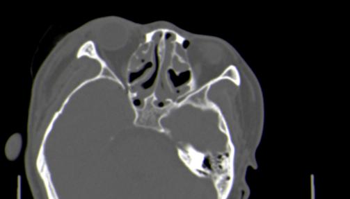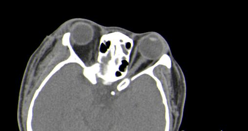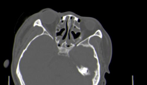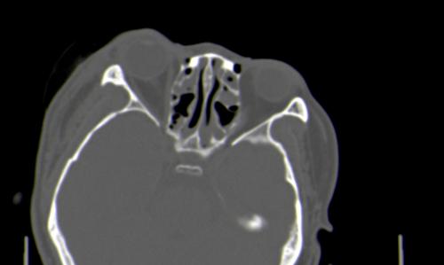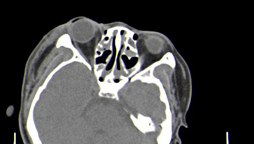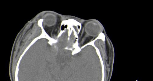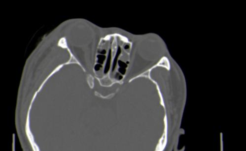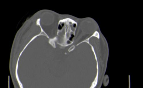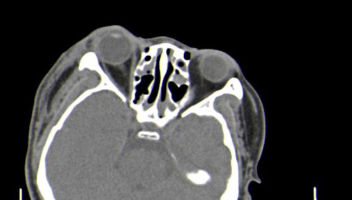 以下是引用w_jianhua在2006-11-29 10:07:00的发言:[br]影像表现:双侧筛窦和上颌窦、鼻腔内均密度增高,右侧视神经增粗、弯曲,左筛窦顶部筛板及右侧纸板近视神经孔区可见骨折线。[br]结合临床表现考虑:右侧筛窦纸板近视神经孔区骨折致右侧视神经损伤。最好做个眼眶冠状扫描,更明确右侧视神经管是否狭窄。 [br] [br]支持[br]