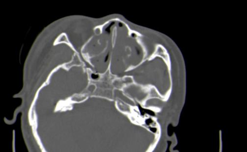 以下是引用皎皎白驹在2006-11-29 8:48:00的发言:[br]影像表现:双侧筛窦和上颌窦、鼻腔内均密度增高,右侧视神经增粗、弯曲,左筛窦顶部筛板及右侧纸板近视神经孔区可见骨折线。[br]结合临床表现考虑:右侧筛窦纸板近视神经孔区骨折致右侧视神经损伤。最好做个眼眶冠状扫描,更明确右侧视神经管是否狭窄。