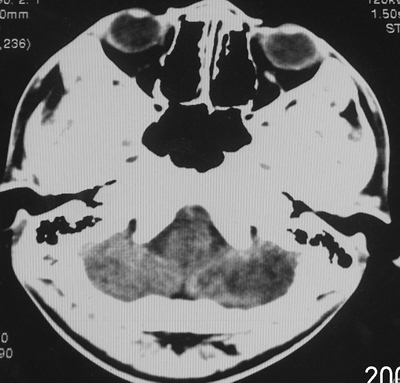 单独看左侧小脑半球的不规则形囊性低密度灶,从发病部位、年龄以及无强化、无占位效应的特点可以考虑毛细胞瘤型星形细胞瘤。同样,如果单独看右侧丘脑的近圆形低密度,也可以考虑囊变形星形细胞瘤。只是胶质细胞瘤一般为单发直接浸润、蔓延生长,而不是在脑内同时出现多个病灶,且瘤周没有一点儿水肿,暂时不予以考虑。